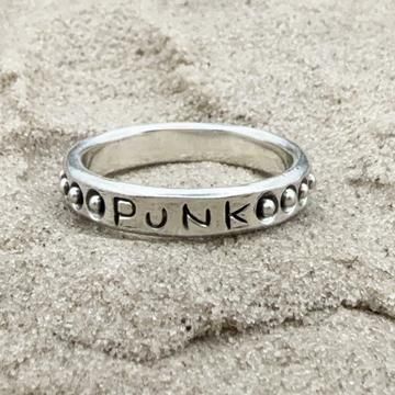シンプルなリングに落書き風のPUNKの文字と