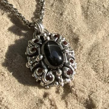 Stone  Diopside, garnet ダイオプサイト 10x14mm、ガーネットΦ2.5mm