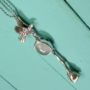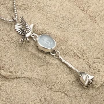羽ばたく鳥とブルーオパールと薔薇